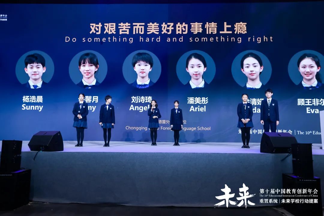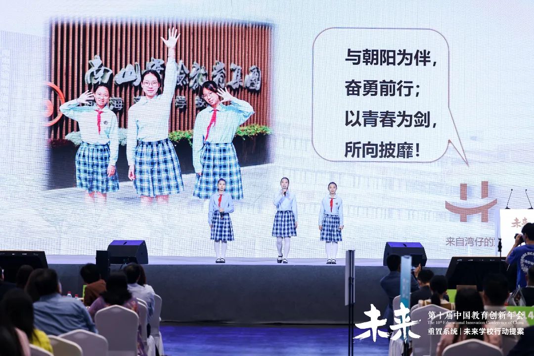 开幕式上,杭州云谷学校、东莞市松山湖第二小学、重庆德普外国语学校学生代表身着伊顿纪德校园服饰,发布学生项目,描绘心中的未来学校。