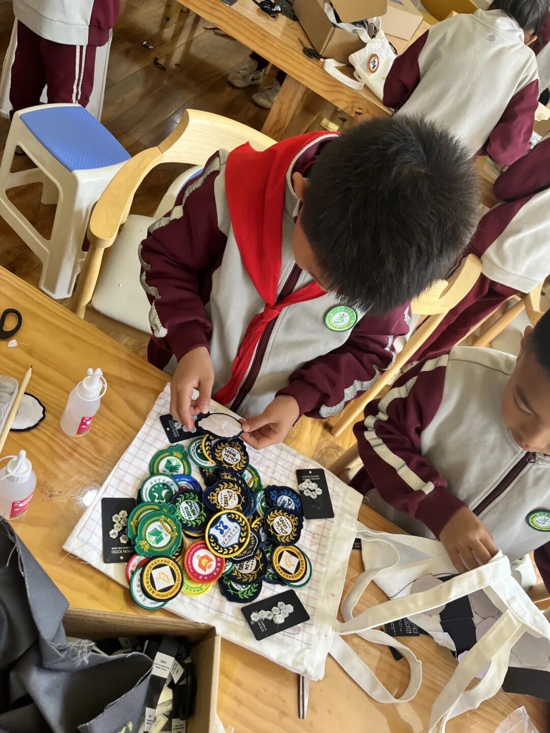 伊顿纪德走进上海市松江九亭第三小学,让ESG理念与低碳行动在校园落地生根。同学们巧用校服废料与旧校标变废为宝,在赋予旧物新生的同时,将环保种子深植心田。