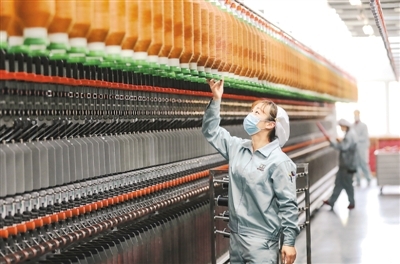 2月10日,位于浙江省宁波市江北区的康赛尼集团恢复近一半的产能,随后逐步恢复到正常水平。图为工人在江北区一家纺纱企业的车间操作。