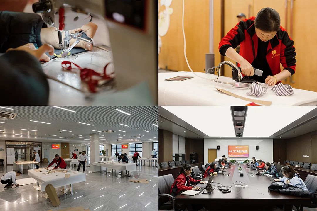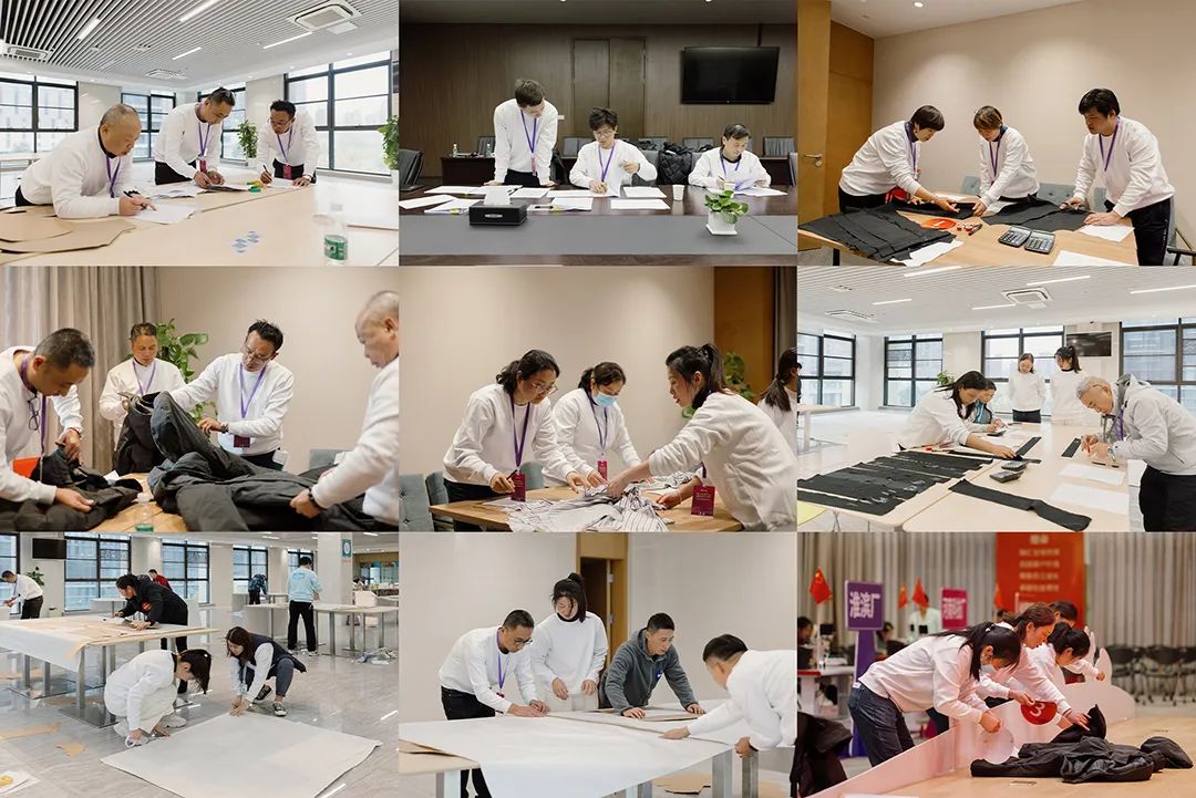 各工厂组团比拼IE技能工时、手工排版、做上立体袋、门牌上拉链等打样技能