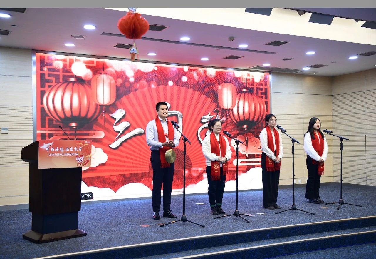 公司外事团队代表以“三句半”的表演形式讲述外事工作的苦与甜。