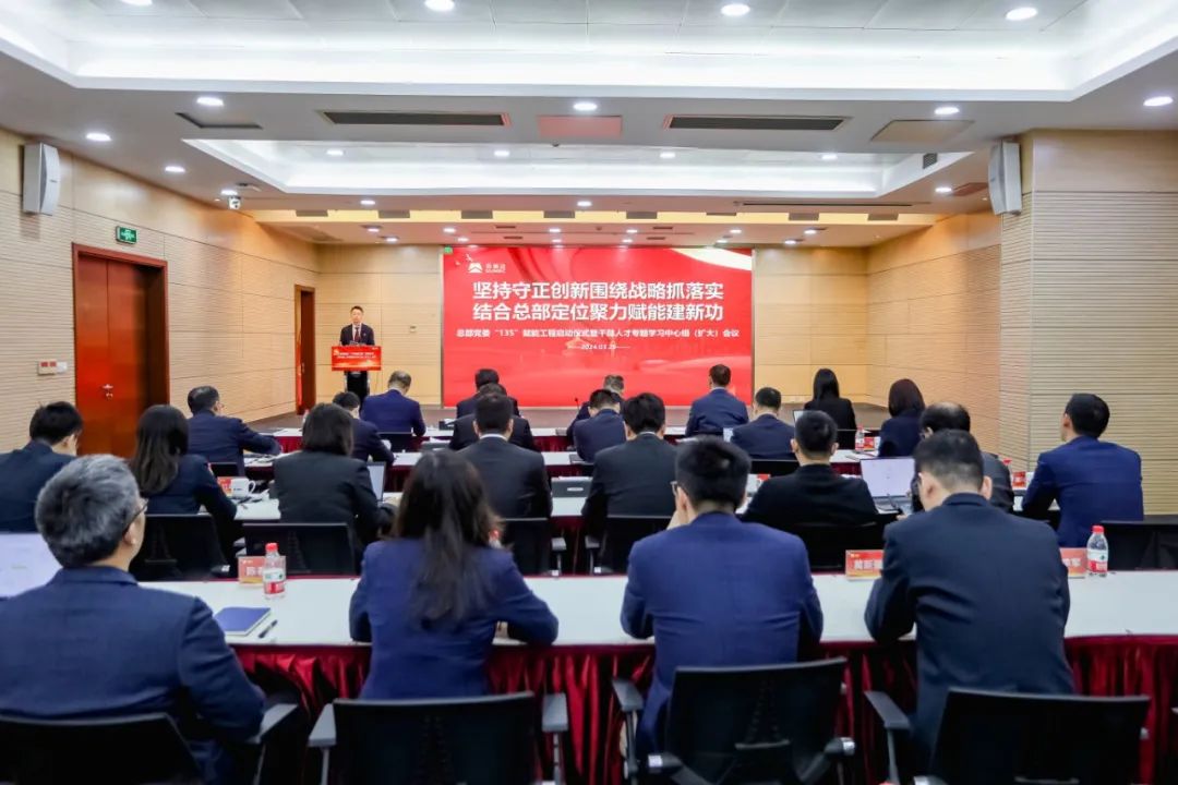 王健对总部党委“135”赋能工程党建品牌进行解读,详细介绍了“学习、融合、育才”三大行动、“大数据、大成本、大风控、大协同、大安全”五大攻坚战的具体工作计划。