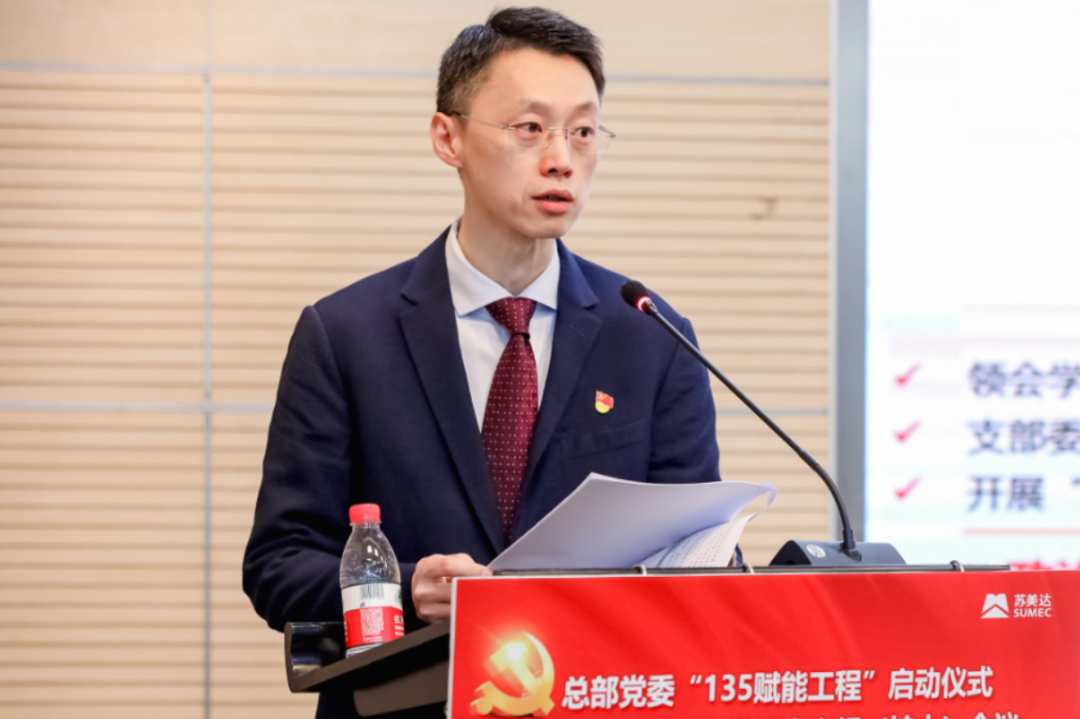 2024年03月29日3月29日,苏美达总部党委召开“135”赋能工程启动仪式暨干部人才专题学习中心组(扩大)会议。公司党委书记、董事长杨永清出席会议并讲话,党委副书记陈峰,党委委员、副总经理、董事会秘书、总部党委书记王健,副总会计师、资产财务部总经理张信,以及总部党委相关同志参会。会议由总部党委副书记、人力资源部总经理贾宇主持。