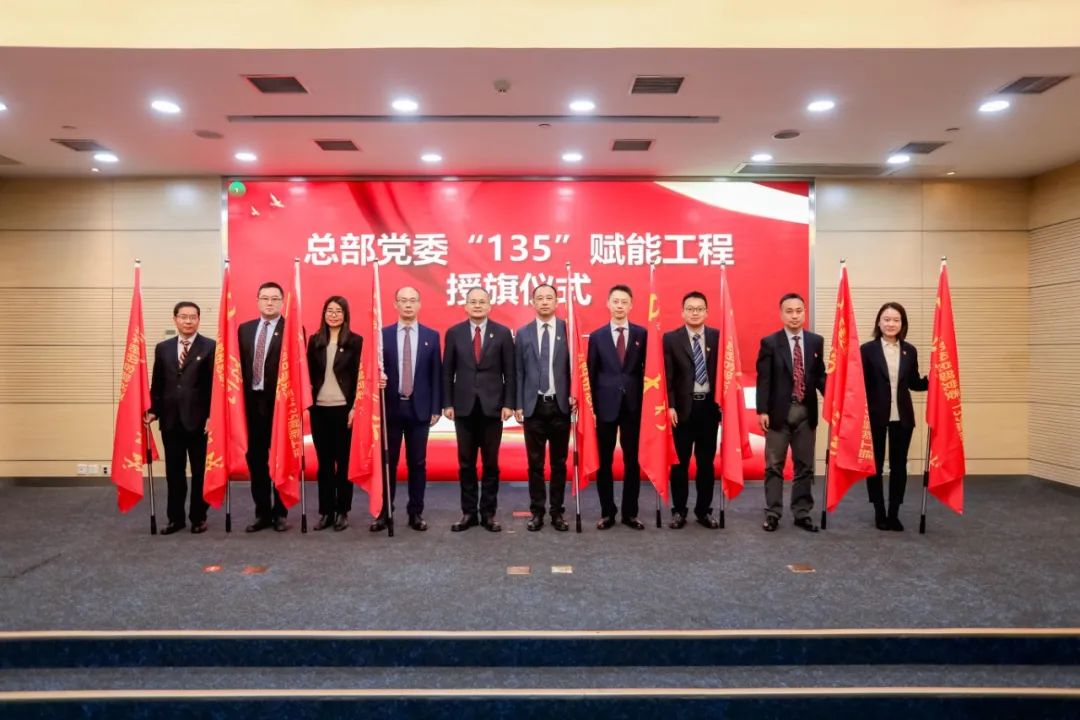 会议举行“135”赋能工程授旗仪式,杨永清向总部党委委员授旗。