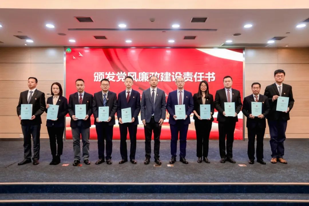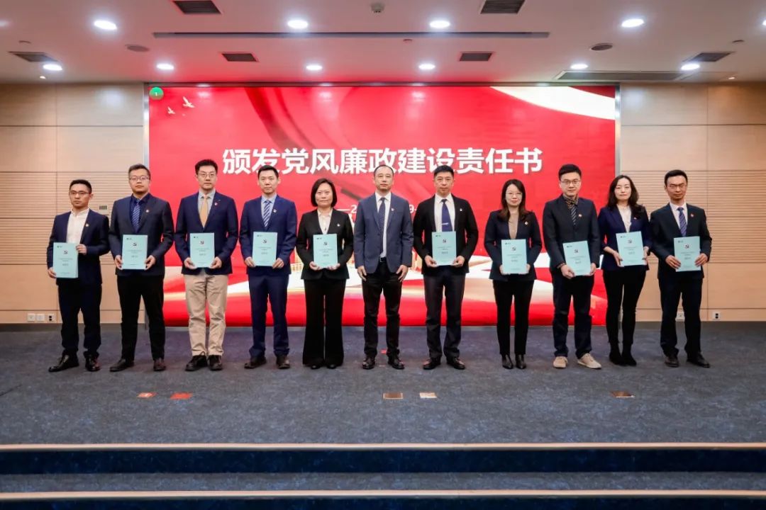 王健向总部党支部书记颁发2024年度党风廉政建设责任书。