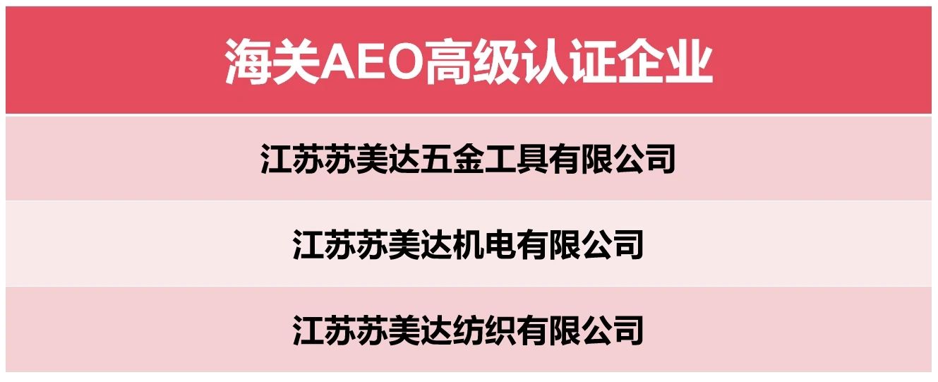 苏美达五金公司、机电公司、纺织公司获评海关AEO高级认证企业